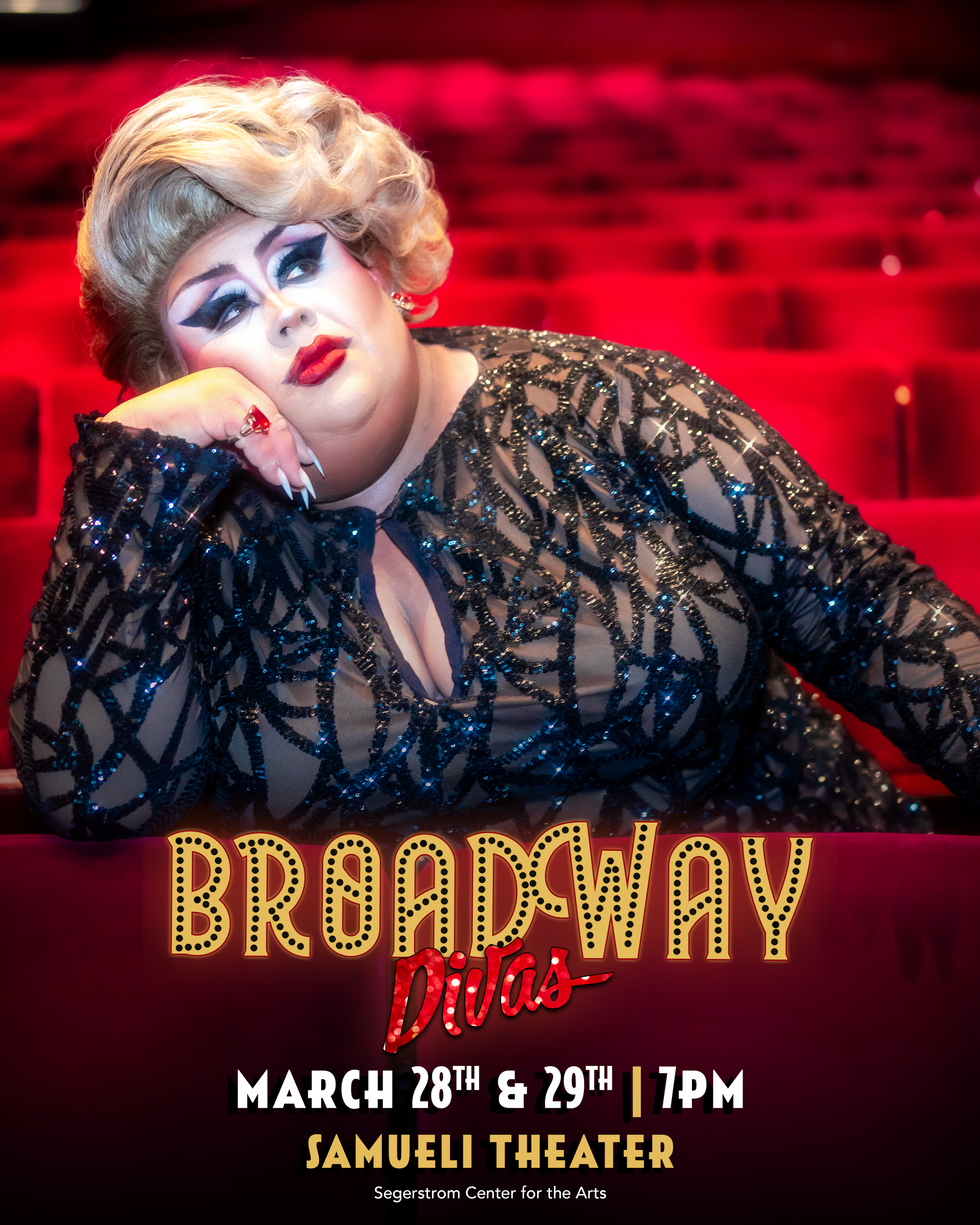 Segerstrom Center’s own Broadway Divas sashay back to Samueli Theater this March with an all-new production bursting with show-stopping costumes, dazzling sets, and bold choreography inspired by Broadway favorites like Waitress, Boop! The Musical, and A Chorus Line. Hosted by the fabulous Miss Clair Voyance, this must-see event features an all-star lineup of Southern California’s fiercest drag performers. Every ticket includes a complimentary glass of bubbly (21+) and the opportunity to meet the queens after the show.